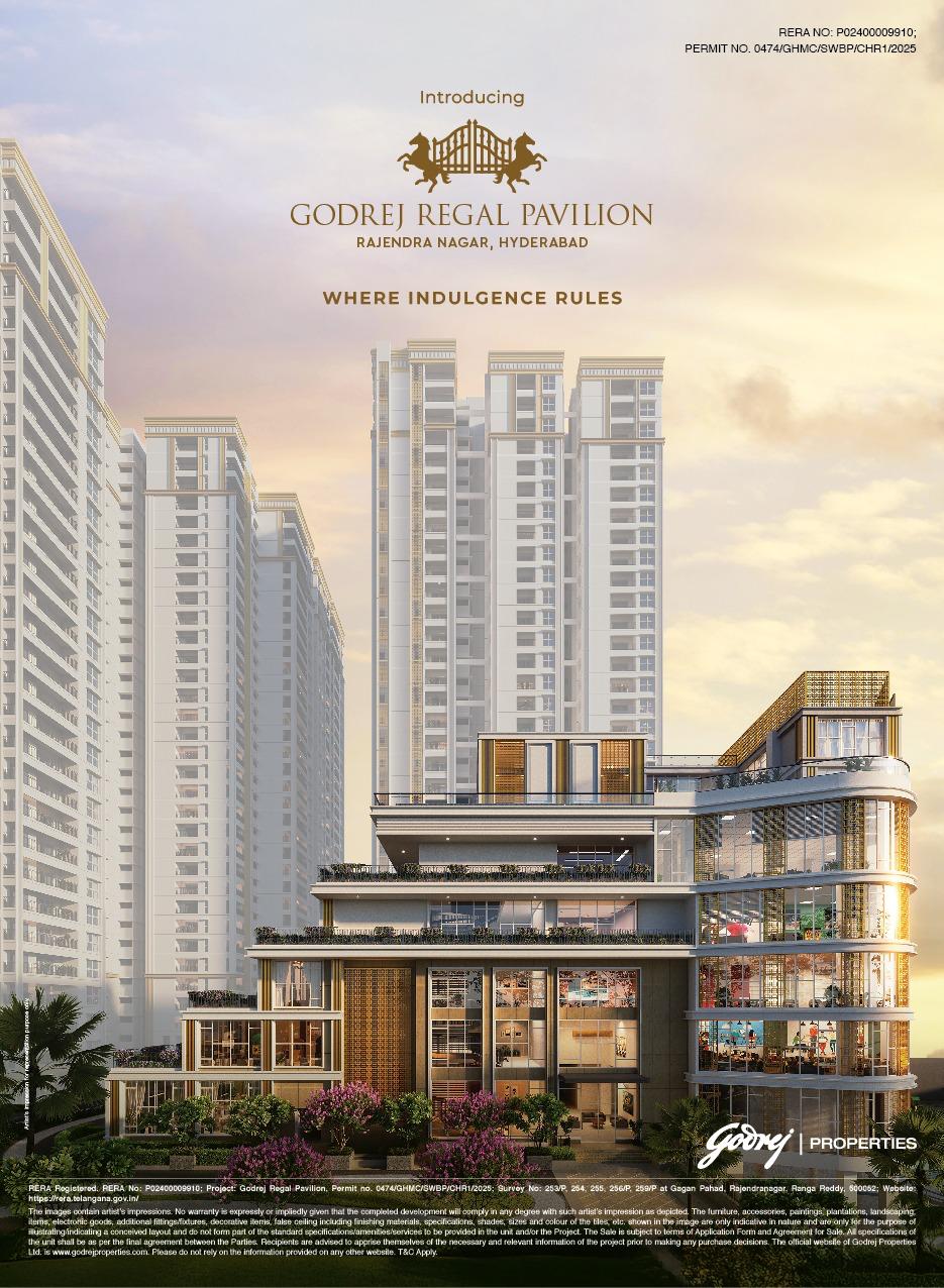 Godrej Regal Pavilion will be constructed on 12.6 acres of land parcel, 9 towers with Ground+32 floors having 2 BHK, 3 BHK & 4 BHK premium residences. Regal Pavilion Godrej Project is located Near Srinagar - Kanyakumari Highway, Rajender Nagar, Hyderabad with - Nehru Outer Ring Road - 4km, Escape Water Park - 7km, MPS Cricket Ground - 7.8km. Godrej Properties Shamshabad Project first is internal amenities - Vitrified tiles, Granite Kitchen, SS Si...