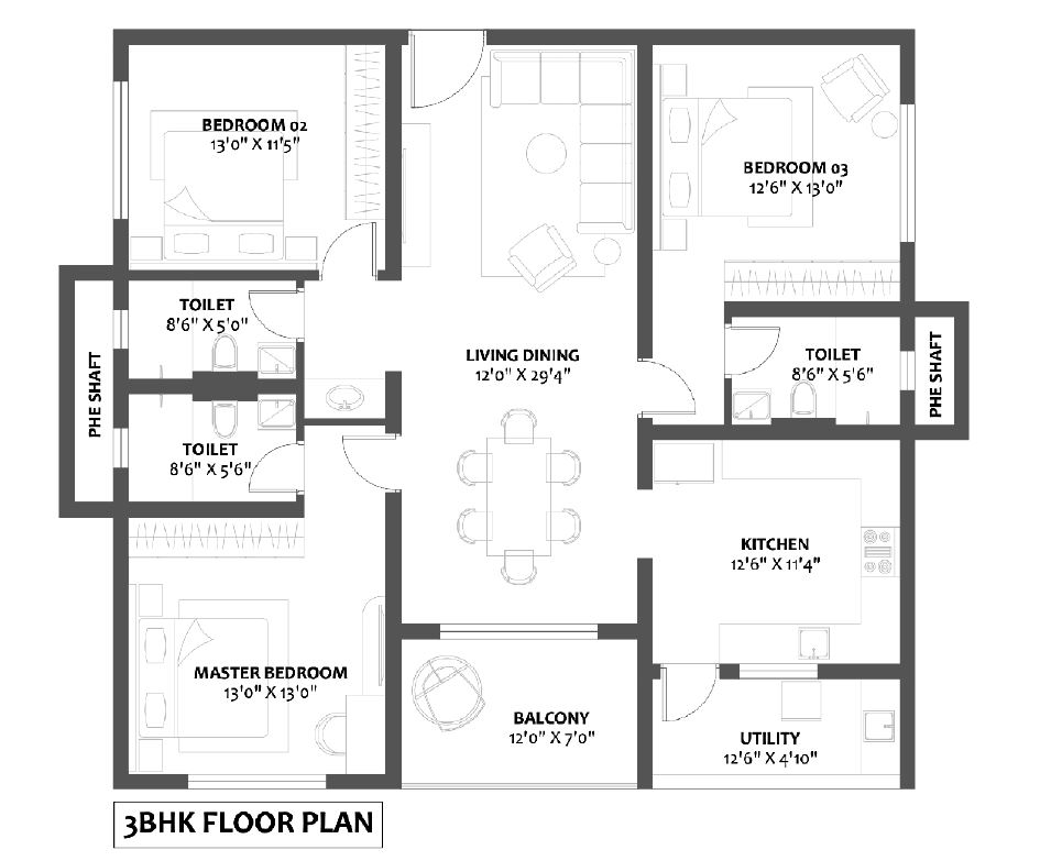 3 BHK Premium 1680 sqft ₹ 1.50 Cr*